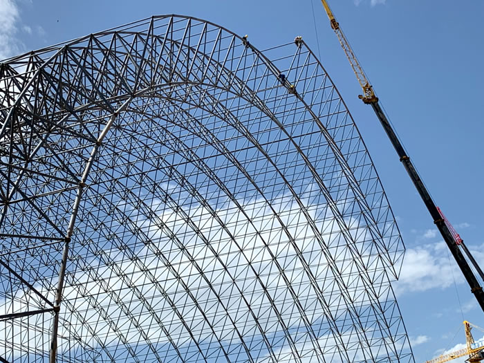 (2)网架加工前应对现场尺寸进行复测,确认无误后方可进行加工、安装;网架制作、运输、安装应遵守《空间网格结构技术规程》JGJ7-2010、《钢网架螺栓球节点》JG/T 10-2009、《钢网架螺栓球节点用高强度螺栓》 GB/T 16939-2016、《钢结构工程施工规范》 GB50755-2012、《钢结构工程施工质量验收标准》 GB50205-2020。